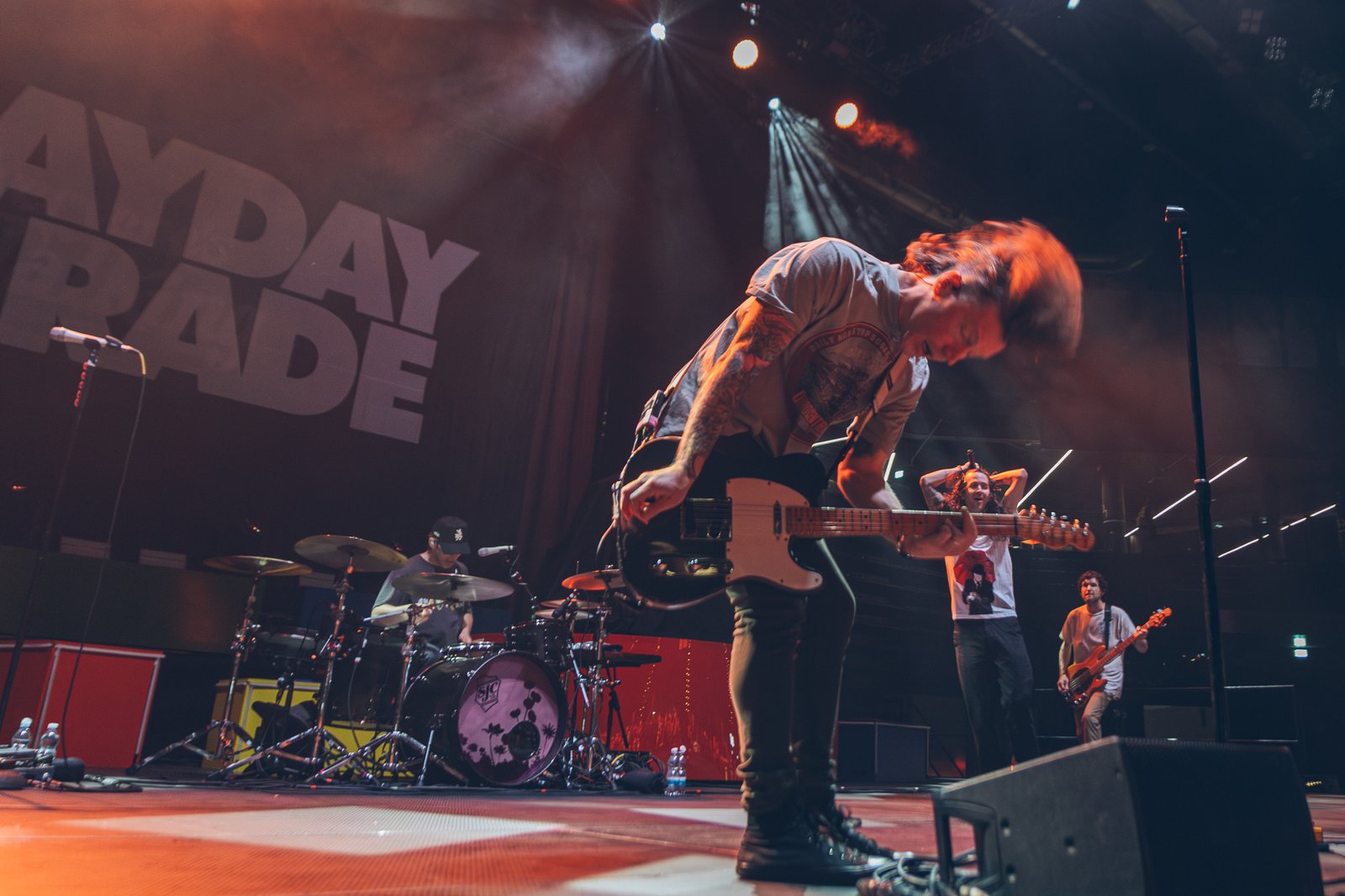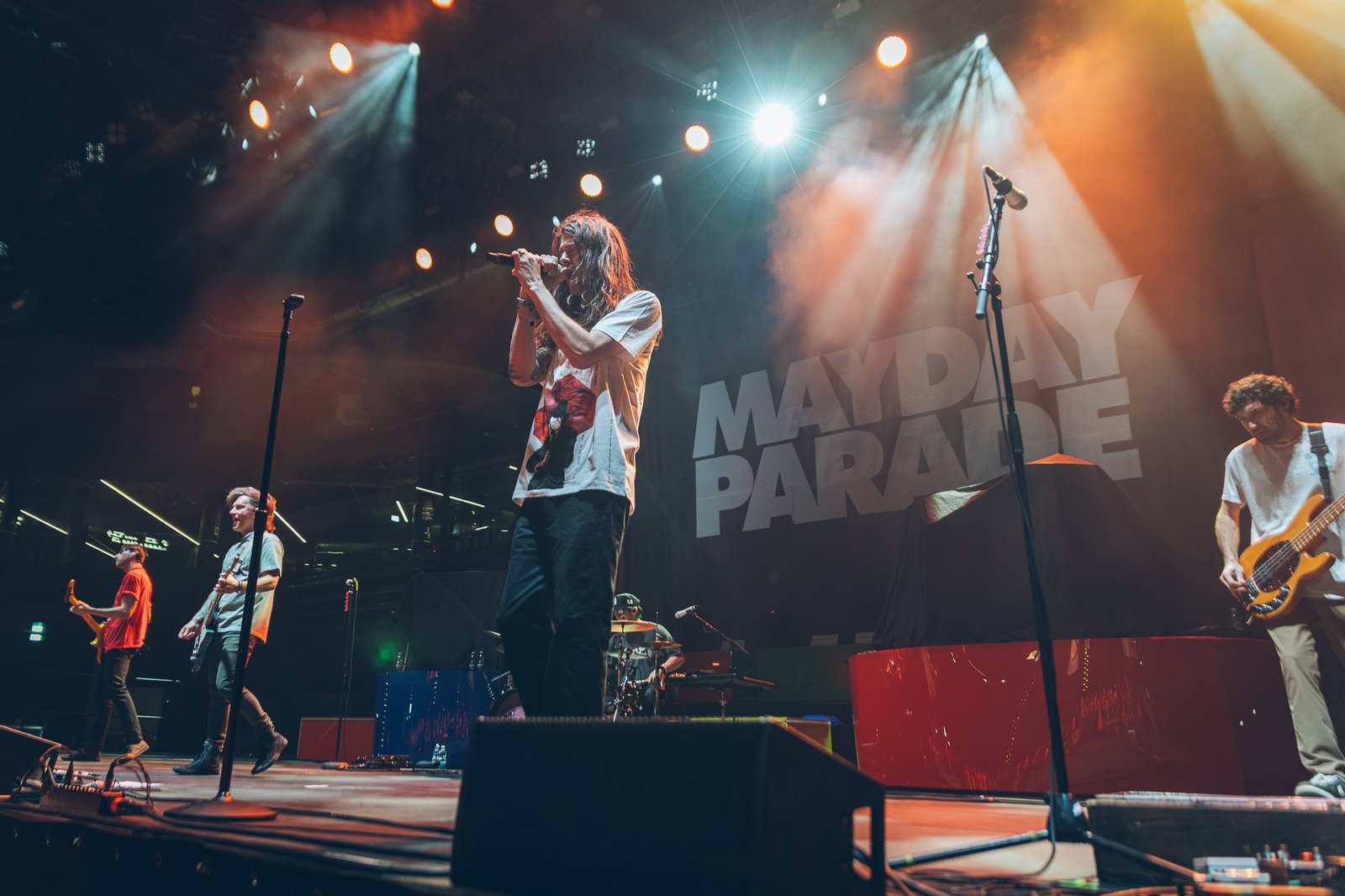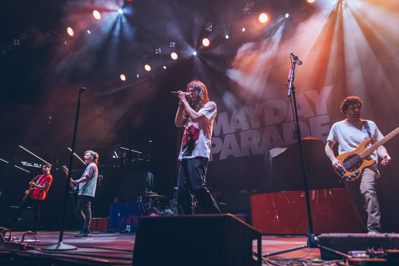 Mayday Parade follow with a performance that balances melodic immediacy and emotional depth. Their set moves between powerful choruses and more reflective moments, carried by the audience’s familiarity with the band’s repertoire. The interaction between stage and crowd becomes increasingly visible, with sing-along sections turning the arena into a collective voice.