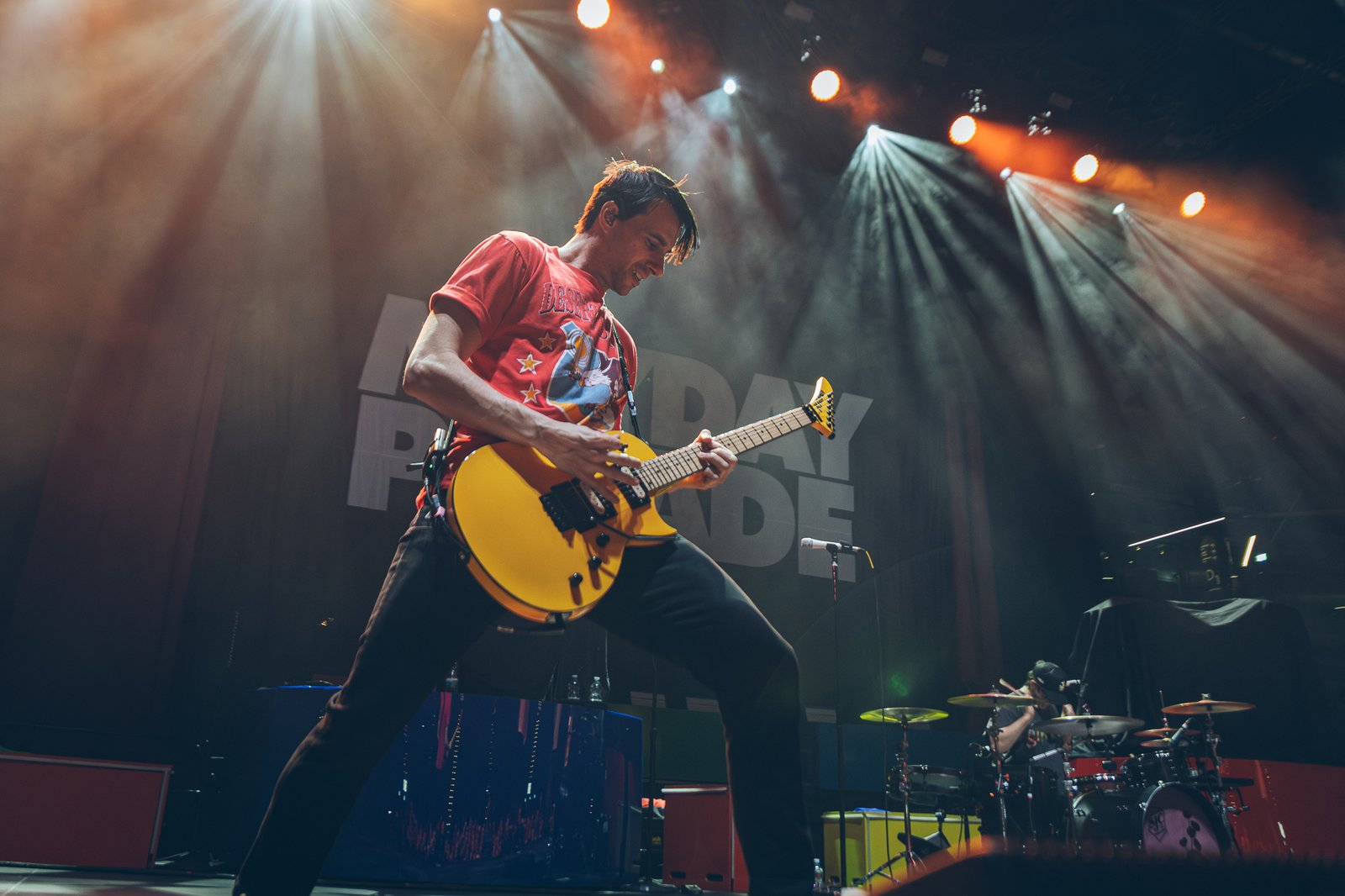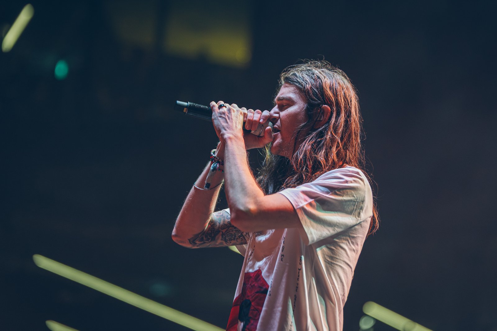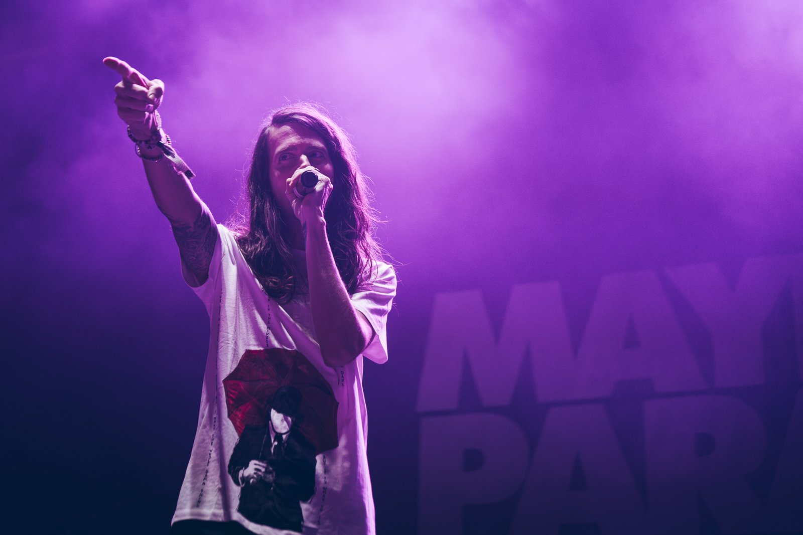 Mayday Parade follow with a performance that balances melodic immediacy and emotional depth. Their set moves between powerful choruses and more reflective moments, carried by the audience’s familiarity with the band’s repertoire. The interaction between stage and crowd becomes increasingly visible, with sing-along sections turning the arena into a collective voice.