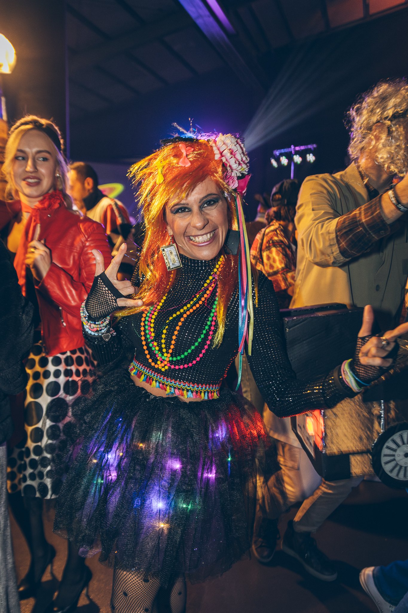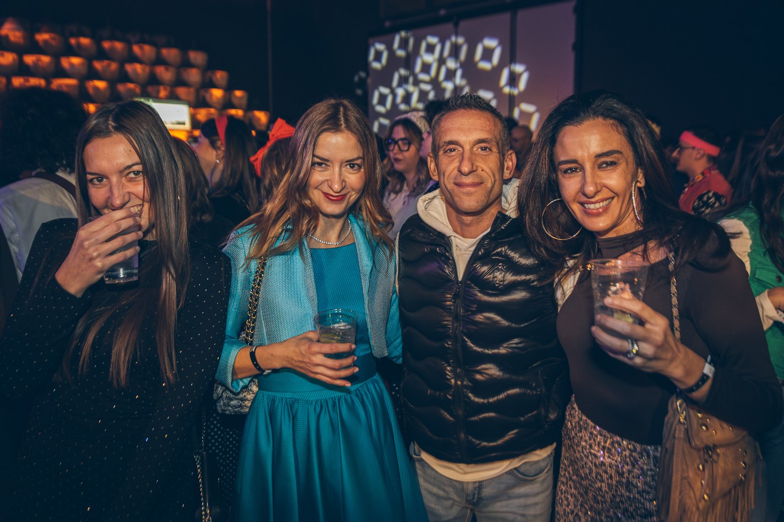 Costumes, references, music, and scenography transformed the party into a shared experience between nostalgia and celebration.